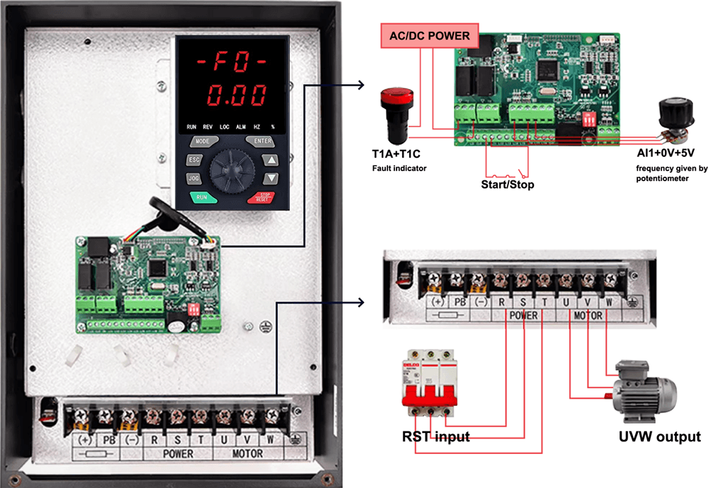 | Styrkort ● Låg frekvens ● Högt vridmoment ● Automatisk spänningsreglering |