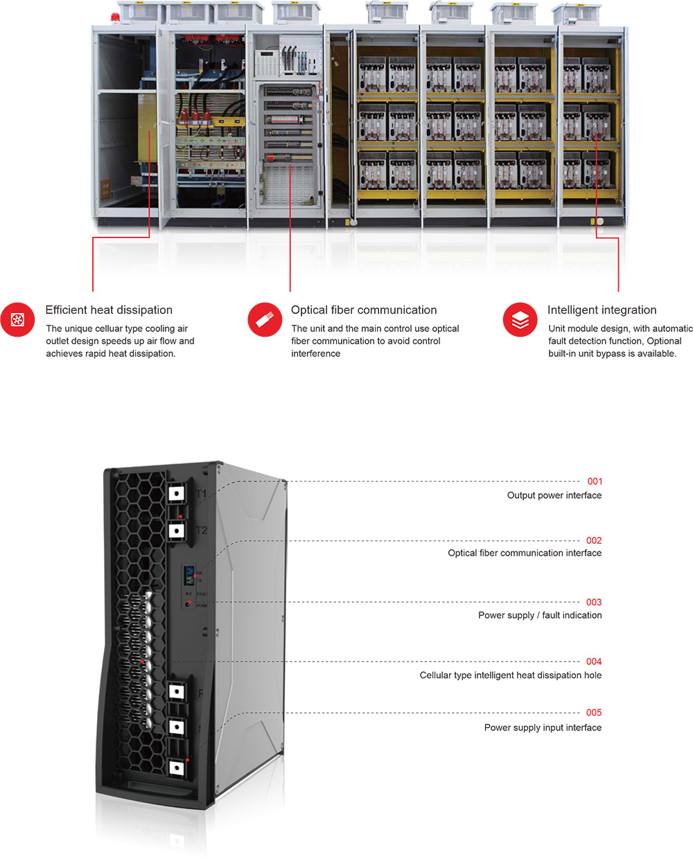 | Huvudskyddsfunktion | Överspänning, överström, kortslutning, överhettning, optisk fiber mm |