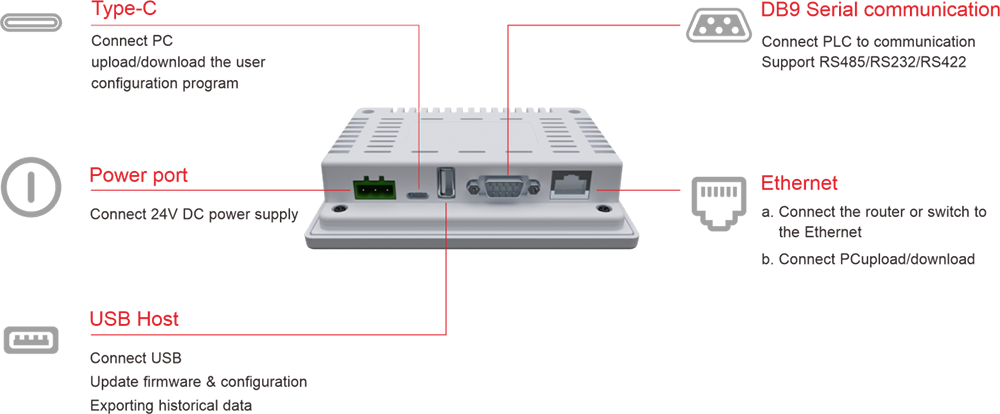 | USB-slav | Typ-C, Support power, programmera upp/ladda ner | ||