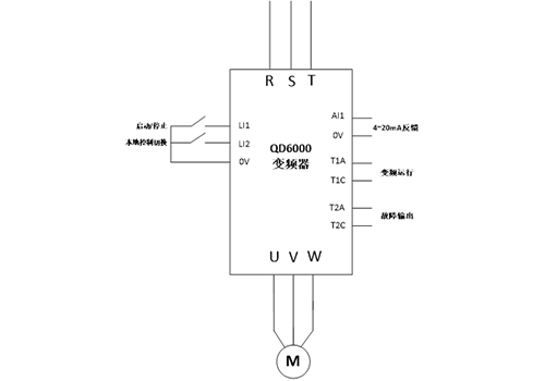 | 06 Användning på webbplatsen: Beroende på platssituationen är en växelriktare i RVE32-serien installerad i styrskåpet, och växelriktarinstallationen och motorn på plats är som visas i figuren. | | ||||||||||||||||||